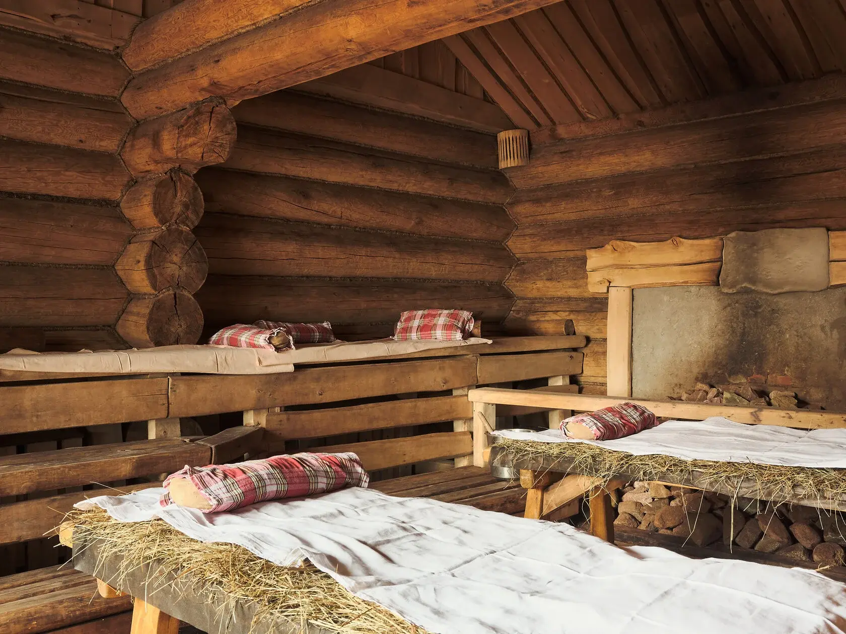 -Два интенсивных прогрева двумя пармейстерами в особой технике работы вениками: периодичное нагнетание пара и прохладные капли, имитирующие дождь -Тёплая постель для парения из берёзовых веников -Растирание ароматным мёдом с ромашкой -Погружение в холодную купель -Отдых в сеннике под одеялом с чашкой горячего чая, кленовым сиропом и апельсином