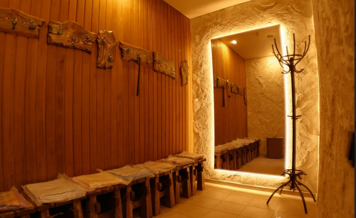 Индивидуальная процедура с различными техниками парения и использованием можжевеловых или березовых веников, а также контрастное охлаждение в ледяной купели.