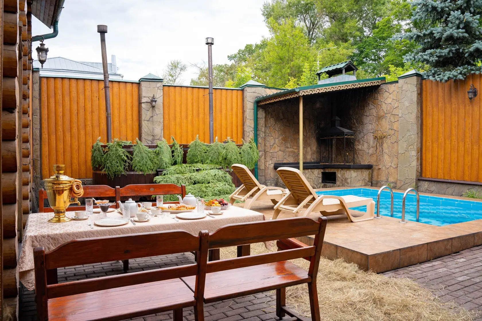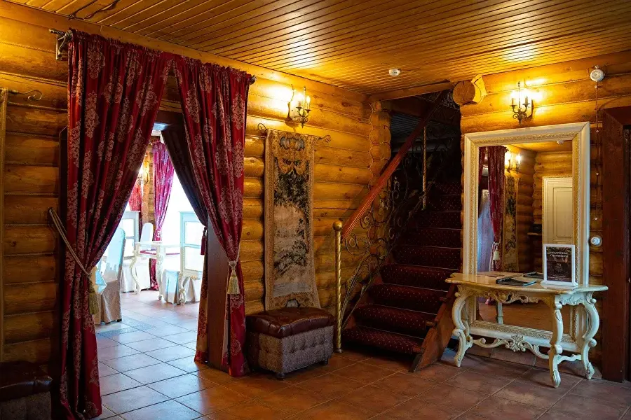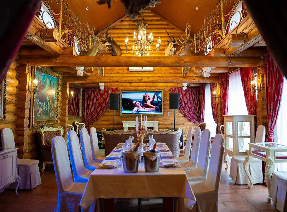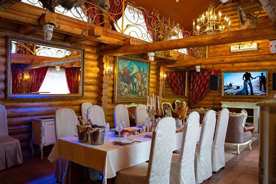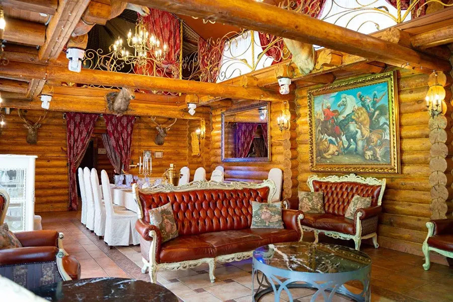 Царский, Старорусский, Гусарский, «Утиная охота», Хохлома, Гжель, «Уютный», «Дача», «Мельница», «Берёзовая роща», «Место встречи изменить нельзя» и, конечно, «Сказка» — названия говорят сами за себя. Внутри — просторные трапезные с русскими печами под камин, массивные дубовые столы, удобная мебель и современное оснащение: от караоке до аудио- и видеоаппаратуры.